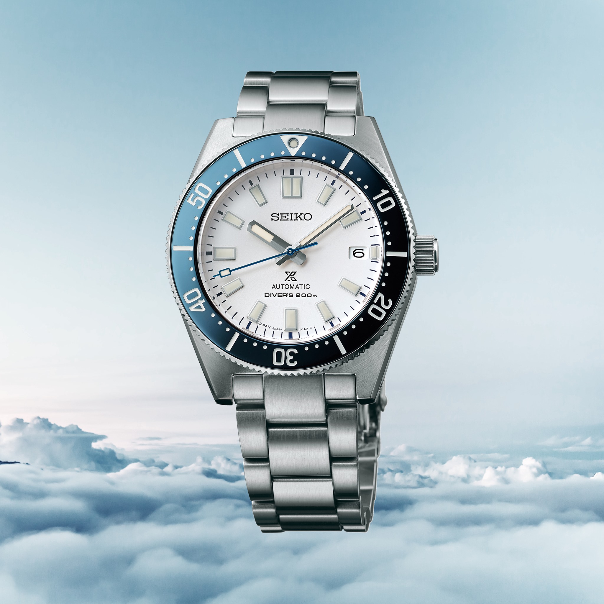 Современная интерпретация самых первых дайверских часов Seiko 1965 г. Широкие стрелки и напыление Lumibrite обеспечивают высокую читаемость, а завинчивающаяся заводная головка и задняя крышка корпуса позволяют погружаться без ущерба для часов на глубину до 200 м. Благодаря особой форме корпуса и задней крышки, часы удобно сидят на руке. Ограниченная серия 6 000 шт.