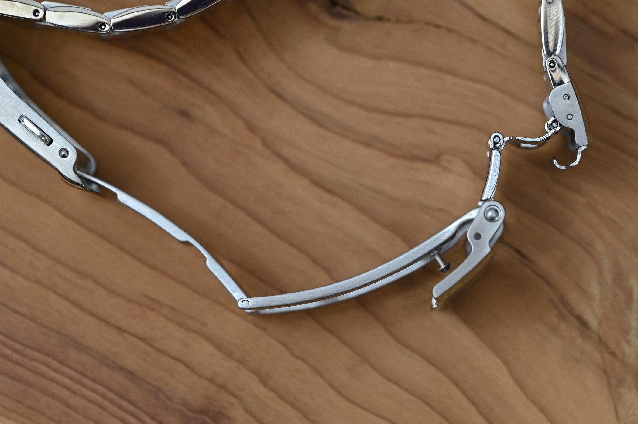 Наконец, новые Seiko SPB185J1 и SPB187J1 снабжены традиционным трехзвенным браслетом из матовой нержавеющей стали. Как вы можете видеть на изображении ниже, застежка довольно сложная, поскольку она оснащена предохранителями и умным удлинителем для дайвинга. Приятный штрих для часов этой данной ценовой категории.